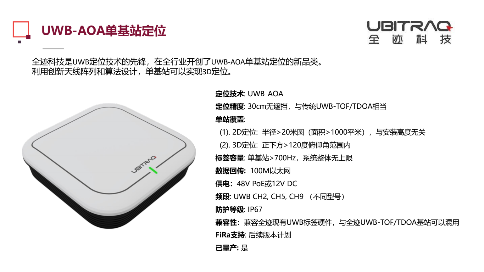 全跡科技發布新一代UWB-AOA單基站定位產品